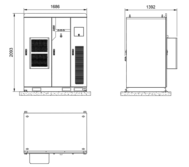 Figuur 2-2 Uiterlijk en afmetingen – model 215 kWh