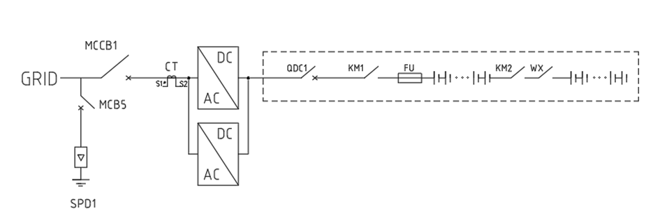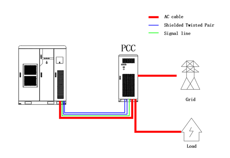 | On-grid | PCS synchroniseert met het net en regelt het vermogen volgens EMS. |
