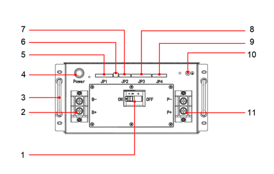 | 5 | Onderhoudsschakelaar | Schakelaar om batterijclusters tijdelijk te onderbreken tijdens onderhoud. |