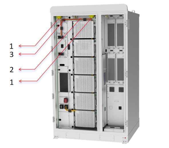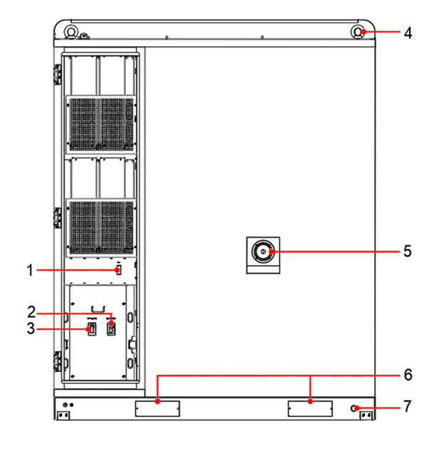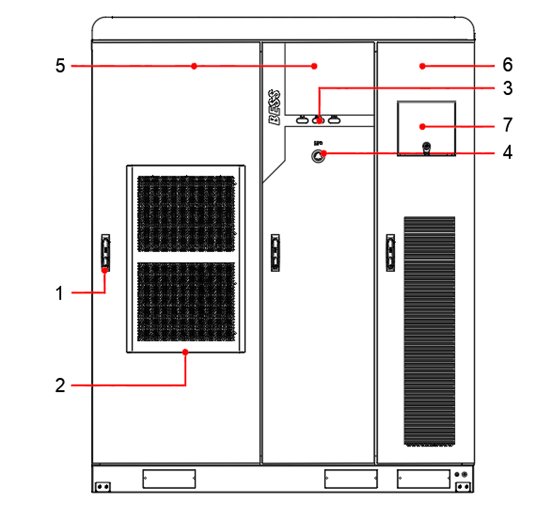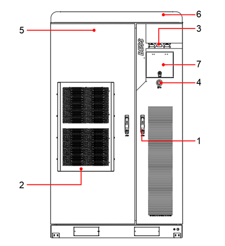 Figuur 2-4 Overzicht componenten model 215 kWh – deuren gesloten