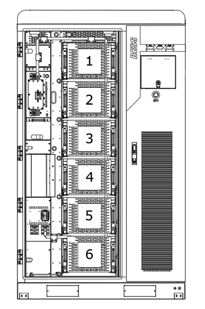 Figuur 2-7 Indeling batterijmodules model 107 kWh
