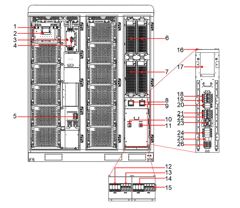 | 11 | AC-hoofdschakelaar | Hoofdschakelaar voor de AC-voedingsverdeling. |
