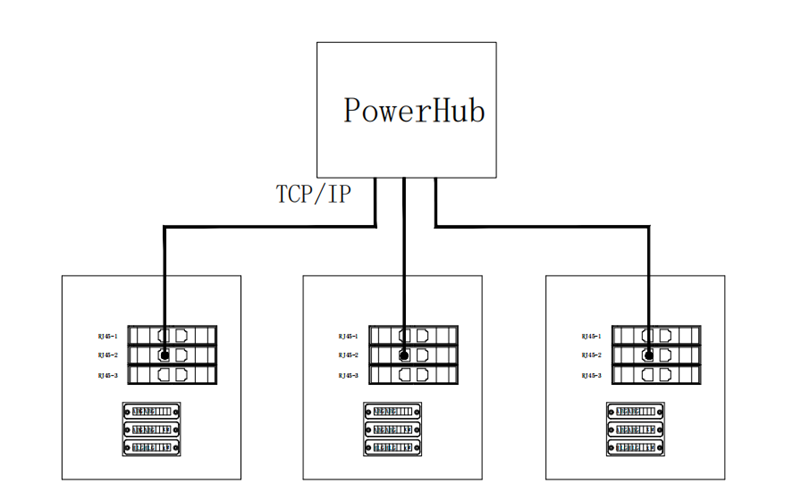 De Ethernet-interfaces van de BOLT-units worden parallel aangesloten op de interne switch van de PowerHub.