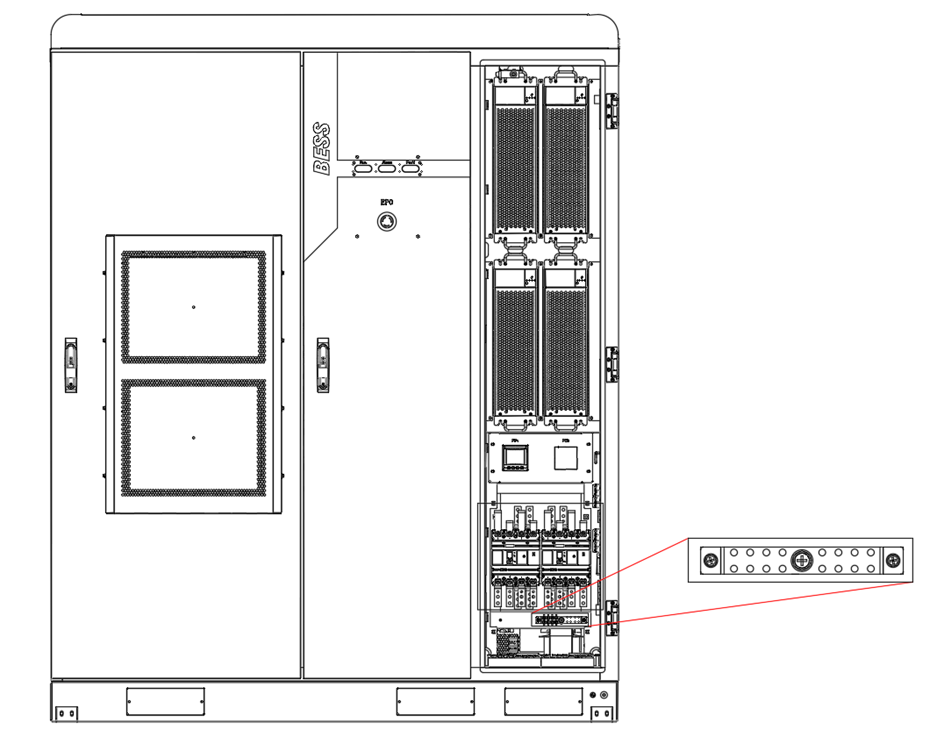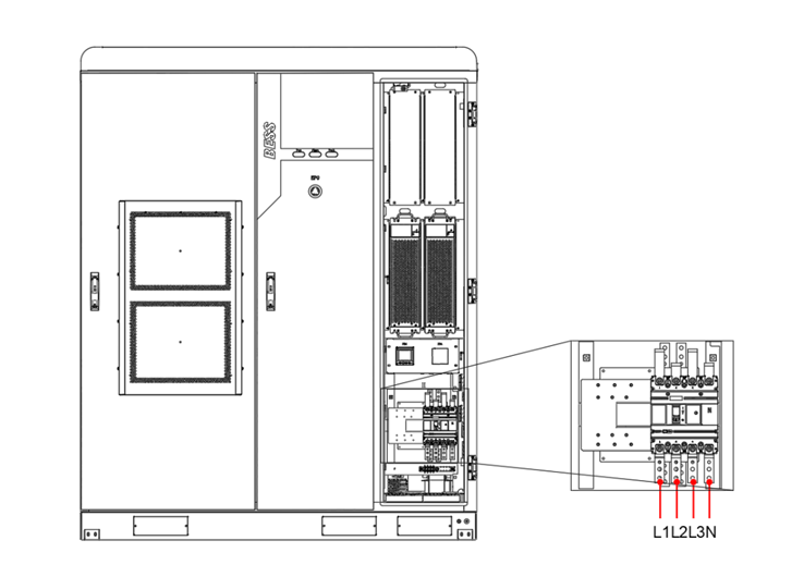 Het energiesysteem maakt gebruik van een 3P4W + PE-aansluitwijze, wat overeenkomt met een TN-S-netconfiguratie (neutraal rechtstreeks geaard).