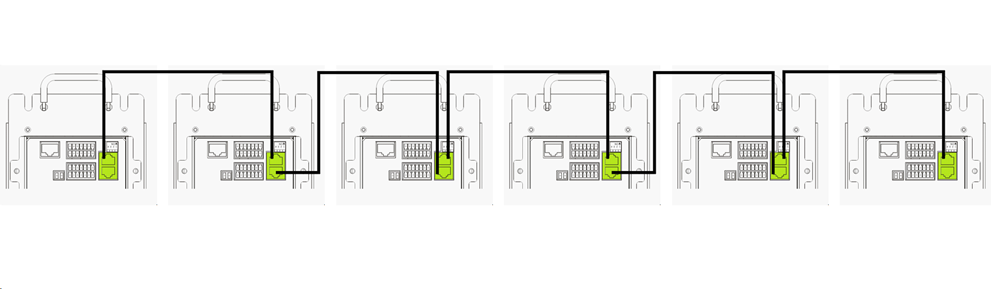 De RS485-communicatie van elke BOLT wordt verbonden met de PowerHub volgens de aanwijzingen in Figuur 8-5.