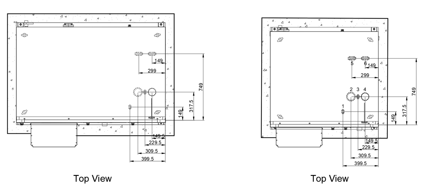 De kabelinvoeropeningen bevinden zich aan de onderzijde van het elektrische compartiment (zie Figuur 8-1).