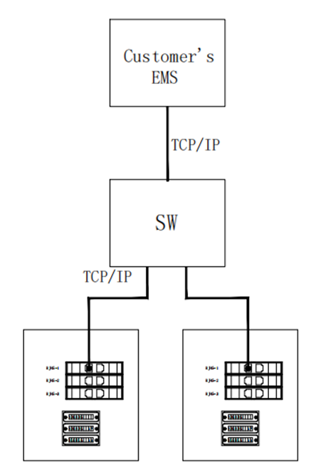 TCP/IP: beide BOLT-units verbonden met de klantswitch (SW).