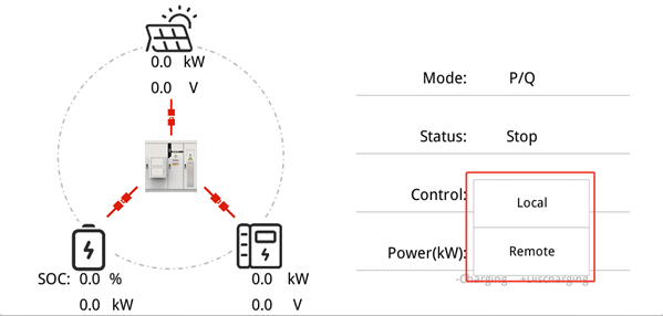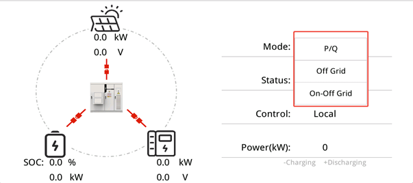 In het pop-up menu selecteer je de gewenste bedrijfsmode (bijv. P/Q, off-grid, on/off-grid).