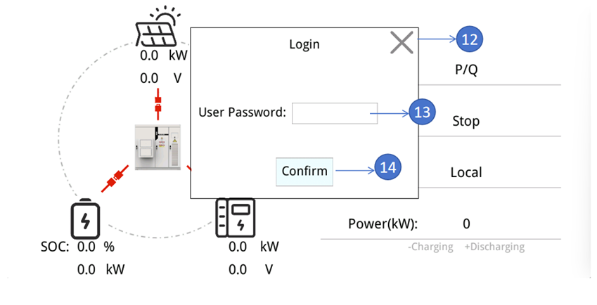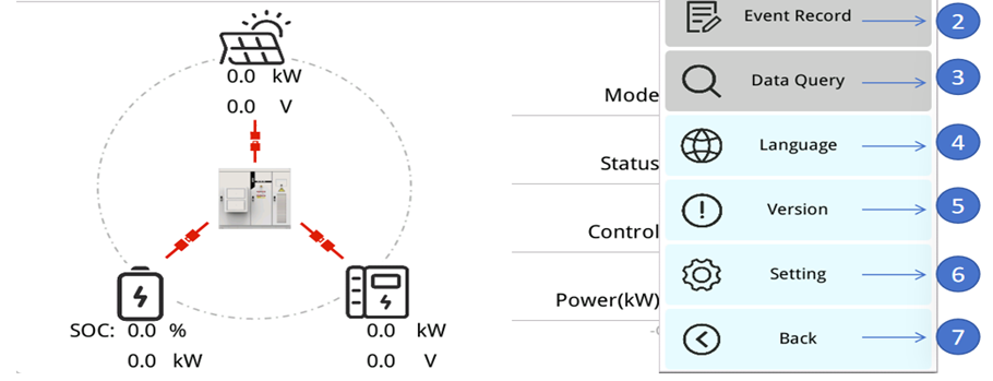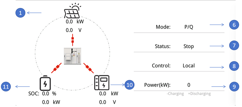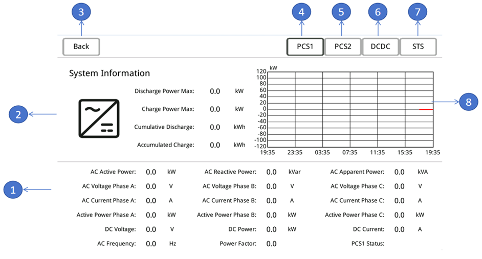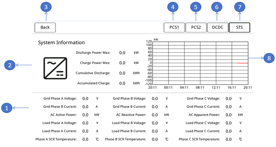 | 1 | PCS-gegevensweergave | Detailgegevens van de geselecteerde PCS (spanningen, stromen, vermogen, status) |