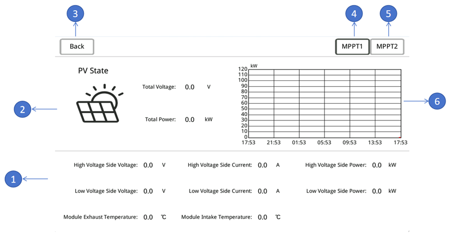 | 1 | PV-icoon | ![]() | Klik om naar de PV-/MPPT-datapagina te gaan |